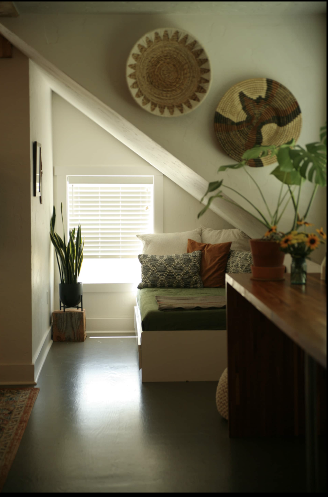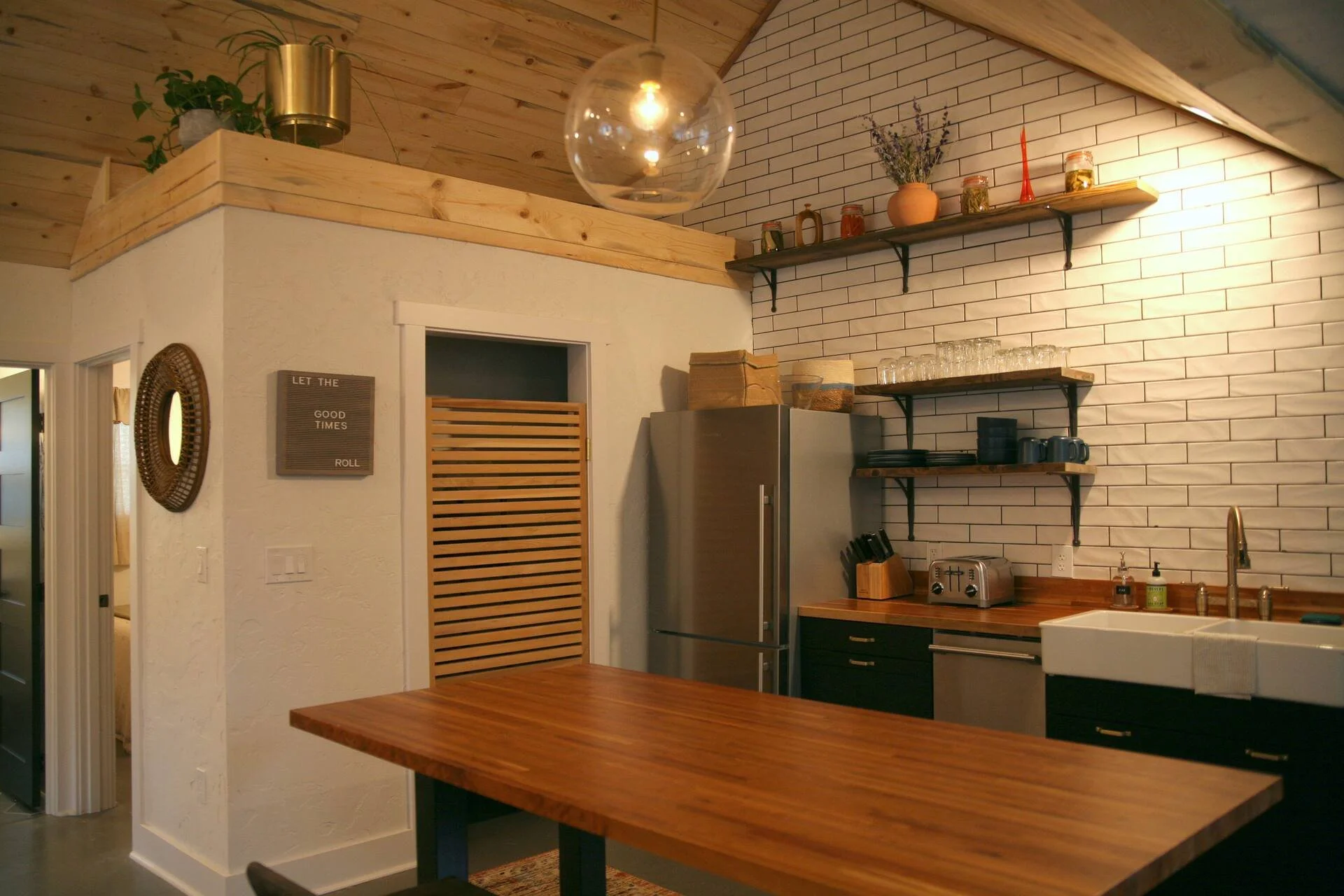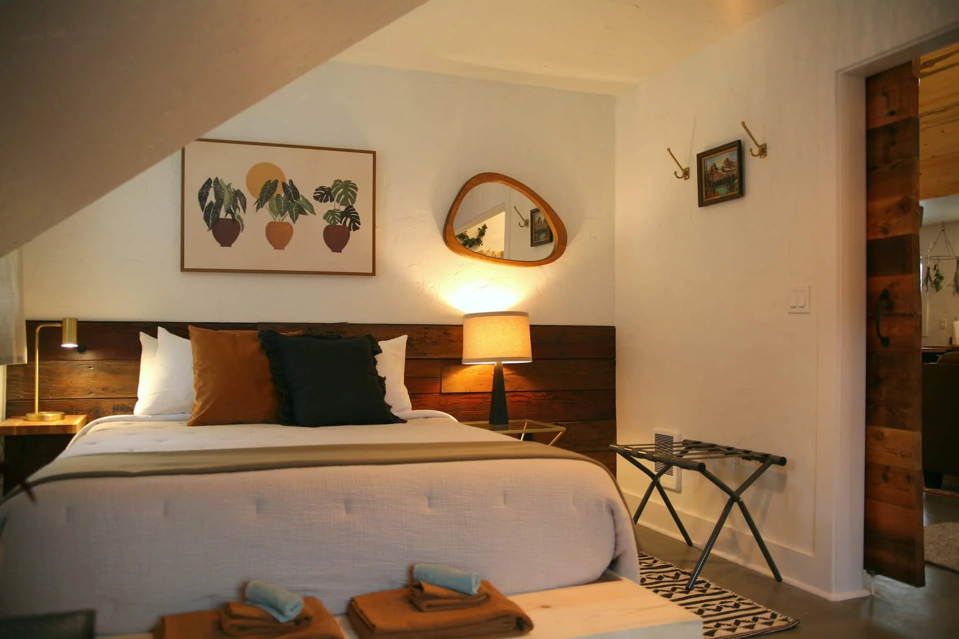 The Valley Loft is an 850 square foot apartment with an open kitchen/dining/living area, two bedrooms and one bathroom that comfortably sleeps 5 guests. Of our two apartments, the Valley Loft is the more family-friendly loft with a custom kids corner stocked with toys and art supplies.